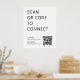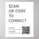 Um simples poster branco "SCAN QR CODE TO PARA CONECTAR". Basta digitalizar o código QR com seu smartphone para ser levado à página de mídia social, site da comunidade ou plataforma de rede desejada. Este poster é perfeito para eventos, reuniões, grupos, organizações e negócios. É também uma forma excelente de fornecer aos seus clientes acesso gratuito a Wi-Fi.