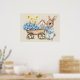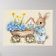 Apresentando nosso coelho personalizado com poster de Flores Azuis! Com um pequeno coelho segurando flores silvestres azuis, um carrinho de madeira com muitas flores silvestres azuis e uma pequena casa no fundo, esta poster traz encanto e brincadeira a qualquer quarto!