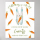 Convites para chuveiros de bebês neutros em termos de gênero. Apresentando o ditado "UM PEQUENO BUNNY ESTÁ A CAMINHO!", uma ilustração de um coelho aquoso (coelho) com cenoura em patas, e muitas cenouras cor de laranja. Itens correspondentes disponíveis.