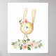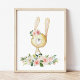 Poster Coelho Baby, Animais da Floresta, Boho, Flores Ros