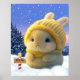 Poster Coelho bonito com chapéu amarelo e cachecol na nev