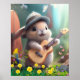 Poster Coelho Bonito Tocando Violão no Jardim das Flores