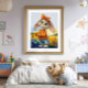 Pôster Coelho feminino em campo de girassóis