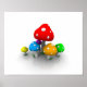 Poster de alguns cogumelos muito coloridos sobre um fundo branco.