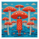 Pôster Cogumelo Retro Psicodélico Vermelho e Azul