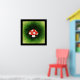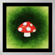 Uma bela ilustração de um cogumelo vermelho visto. O fundo é uma textura verde de meteoros.