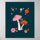 Poster Cogumelos e Flores Retro Dos Anos 70 Marinho Azul