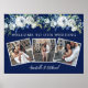Poster Colagem de Fotos de Casamento Floral Branco Azul-m