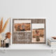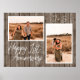 Pôster personalizado de colagem de fotos para o 1º aniversário de casamento. Apresenta uma imagem de fundo em madeira marrom escuro e pode ser personalizado com as iniciais do casal ou qualquer texto personalizado para celebrar o primeiro ano de casados.
