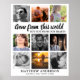 Um pôster de lembrança para exibir no funeral ou velório de um ente querido, apresentando 9 fotografias quadradas, a doce citação 'Partiu deste mundo, mas não de nossos corações', seu nome e datas. O fundo pode ser alterado para qualquer cor para se adequar ao tema do funeral.