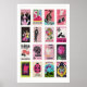 Poster Colagem de rótulo de caixa de fósforos rosa, Ephem