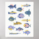 Ilustração para crianças com peixes de diferentes formas. Alguns deles são bonitinhos, assustadores, outros só parecem burros.