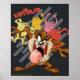 Veja a TAZ™ neste gráfico com poses coloridas de birra dispostas atrás dele.