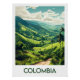 Illustrated poster of Colombia featuring a lush green valley with wax palm trees under a bright sky. Perfect wall art to bring a sense of escape and wild nature to your space.