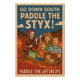 Junte-se a Charon num belo cruzeiro ao rio Styx neste poster de viagens ao estilo da vintage! Apresentando uma família feliz remando através de águas flamejantes com seu guia esquelético, esta paródia celebra o absurdo charme do turismo do submundo. Uma combinação perfeita de 1950 retro-design e humor mitológico escuro.
