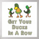 Get Your Ducks In a Row design apresenta patos desenhados à mão em linha com uma legenda destacada abaixo - uma expressão humorística de pato para aqueles que precisam se organizar.