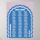 Nosso símbolo de assento de casamento, estilo retrógrado, mínimo e ousado é perfeito para o casal da moda que ama se destacar e fazer uma declaração ousada. Nosso design apresenta uma combinação de cores roxa azul brilhante e arrojada. Formas simples de arco ondulado e círculo de abstrato criam uma aparência em negrito com "assento" exibido ousadamente em letras grandes e brancas.