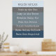 Texto das regras da praia : Soak up the Sun - Jump in the Waves - Breathe Salty Air - Sinta a brisa - Monte Sandcastles - Descanse. Relaxe. Refletir - Pés nu necessários Tons de azul modernos e fundo de blocos coloridos cinzentos