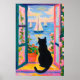 Poster Colorful Coastal Cat Painting Window Sailboats
