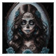 Uma Colorida Colorida Dama do Crânio de Açúcar feita de blues, fundo de ornamentado.