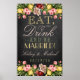 15" x 24" Antigo Quadro de Giz Floral Casamento Sinal de Boas-Vindas; Coma, Beba & Seja Casado!