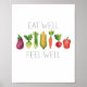 "Coma Bem Sentir-Se Bem" Citação com legumes de cor d'água coloridos. Milho, rabanete, cenoura, pimenta vermelha, nabo de berinjela e aipo. Presente perfeito para a Permacultura, o Jardineiro, o agricultor e os comedores saudáveis de plantão.