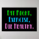Poster Coma Exercício Certo Morra Saudável - Humor Escuro