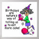 Aniversários são a maneira da natureza nos dizer para comer mais bolo! Stella num chapéu de aniversário com um bolo em camiseta de aniversário humorística, botões de aniversário, cartões, adesivos, ímanes, chaveiros, canecas, sacos de tote, ornamentos e outros artigos de aniversário engraçados.