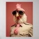 Um frango de Páscoa real e na moda vestido com um uniforme militar bege com sotaques cor-de-rosa, uma gravata com penas iguais e óculos de sol de aviador arrojados. Este pássaro chic e comandante traz uma reviravolta única e moda às celebrações da Páscoa.