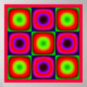 Uma combinação de cores muito alta, pulsante, oscilante e em movimento.