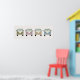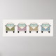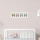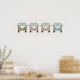Este cartaz divertido apresenta a vista frontal de quatro vans de camping retro antigas em tons de verde, rosa, amarelo e azul. Um complemento fofo para um berçário.