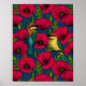 Comedores de abelhas e papoilas desenhados e coloridos no Illustrator, padrão sem costura.