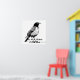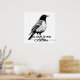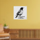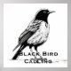 A bold black-and-white comic-style illustration of a bird standing upright with its head tilted back and beak wide open, as if calling out or cawing loudly. The design uses strong contrast, thick ink lines, and minimal shading to create a dramatic, expressive look. The pose captures motion and sound visually, with a stylized, graphic-novel feel that emphasizes energy and attitude.