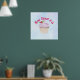 Um poster que diz: Como é doce. Projetado com uma ilustração de um cupcake delicioso com espirais cor-de-rosa e uma baga com folhas aninhadas no glacé. Colocado sobre um fundo de aquarela azul claro.
