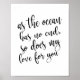 Uma elegante placa de casamento de ponta, mostra o texto "como o oceano não tem fim, assim como meu amor por você" em uma letra extrovertida, a textura do pincel adiciona um sentimento espontâneo e brincalhão. A cor de fundo pode ser personalizada de acordo com as suas necessidades e preferências, contacte-me se tiver alguma solicitação especial.