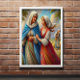 Ruth 1 Ruth vai com Naomi nesta cena comovente, Ruth e Naomi caminham juntos, simbolizando lealdade e devoção. O meio rural pacífico, com campos exuberantes e uma modesta casa, destaca temas de simplicidade e novos começos. O traje vibrante de Ruth reflete sua força e coragem enquanto segue Naomi nessa jornada de fé. Suas expressões compassivas e mãos entrelaçadas capturam unidade e confiança. Esta bela representação, inspirada no Livro de Ruth, lembra aos espectadores o poder duradouro do amor, da resiliência e das relações fiéis durante as épocas mais desafiadoras e transformadoras da vida.