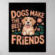 Este gráfico adorável mostra um filhote de desenho animado alegre, marrom-claro e branco com uma expressão alegre e sua língua para fora. O texto vibrante e colorido de pêssego declara, "CÃES FAZEM OS MELHORES AMIGOS," cercado por flores delicadas, folhas, e estrelas minúsculas, acrescentando um toque de choradeira. O design é colocado sobre um fundo preto sólido, destacando a mensagem afetiva. Download digital apenas para uso pessoal.