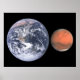 Poster Comparação do Tamanho da Terra e Marte Espaço