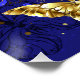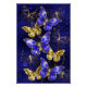 Composição de borboletas luxuosas de safira e joias de ouro sobre fundo texturizado a azul.