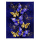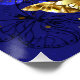 Composição de borboletas luxuosas de safira e joias de ouro em fundo azul texturizado.