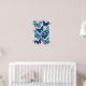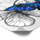 Composição vertical de borboletas de morfo realistas, azuis e brancas sobre fundo texturizado de cinzas. Borboleta azul Morpho.