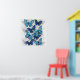 Composição vertical de borboletas de morfo realistas, azuis e brancas sobre fundo texturizado de cinzas. Borboleta azul Morpho.