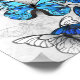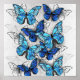 Composição vertical de borboletas de morfo realistas, azuis e brancas sobre fundo texturizado de cinzas. Borboleta azul Morpho.