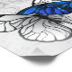Composição vertical de borboletas de morfo realistas, azuis e brancas sobre fundo texturizado de cinzas. Borboleta azul Morpho.