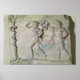 Tablet grego que retrata o Hércules carregando do tripé delfíco em frente ao Apolo no Louvre, Paris, França.