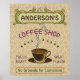 Esta poster retangular de parede com tema de café é perfeita para qualquer um que comanda seu próprio compro de café ou tem um tema de café na decoração da cozinha da sua casa. Feito em cor marrom, verde, púrpura e pincéis de laranja, este design de inspiração espresso/cappuccino apresenta uma xícara em um disco, duas banners de texto personalizados e as palavras "Compro de café / Raiva fresca / Sabor de Excelente" em roxo. A caneca está a vapor e a faixa de cima tem espirais que imitam a fumaça. Tudo repousa sobre um fundo claro de feijão-de-café. Use as modelos para adicionar seu nome facilmente. Você também pode mudar o slogan inferior se quiser, que atualmente lê, "Sem Motivos para Reclamação." Se precisar redimensionar o texto para o ajustado, clique em "Personalizar." Pegue uma xícara de Joe e admire seu poster de café personalizado.
