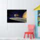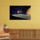 Tamanho recomendado: 52 x 35 polegadas (tamanho original: 48 x 32 polegadas a 300 PPI, 138 MP). Muitos outros tamanhos disponíveis. Clique em 'Personalizar!' à direita. Este é um conceito de artistas da Cassini durante a manobra SOI (Saturn Orbit Insertion, Inserção de Órbita em Saturno), logo após o motor principal ter começado a disparar. A espaçonave está se movendo para fora do plano da página e para a direita (disparando para reduzir a velocidade da espaçonave em relação a Saturno) e acaba de atravessar o avião do anel. A manobra do SOI, que tem aproximadamente 90 minutos de duração, permitirá que a Cassini seja capturada pela gravidade de Saturno em uma órbita de cinco meses. A proximidade da Cassini com o planeta depois da manobra oferece uma oportunidade única de observar Saturno e seus anéis em altíssima resolução. Crédito: NASA/JPL