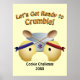 Este design relâmpago apresenta um casal de personagens engraçados e ferozes de biscoitos virados para fora em frente a uma tigela de mistura e colheres de madeira cruzadas sob uma imagem de texto arquivado lendo "Vamos Prepare-se para Desmoronar!" É fácil personalizar para o seu evento de assar.