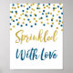 Espelhado com sinal de amor para o bebê borrifado em um padrão de confete azul-marinho e ouro.