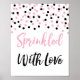 Espelhado com sinal de amor para o bebê borrifado em um padrão de confete rosa e preto.